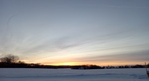 The sunrise you see here took place at 7:40 am this morning in south-western Ontario Canada, with the temperature at minus 18 C (a bit less than zero fahrenheit) as I took my photos.